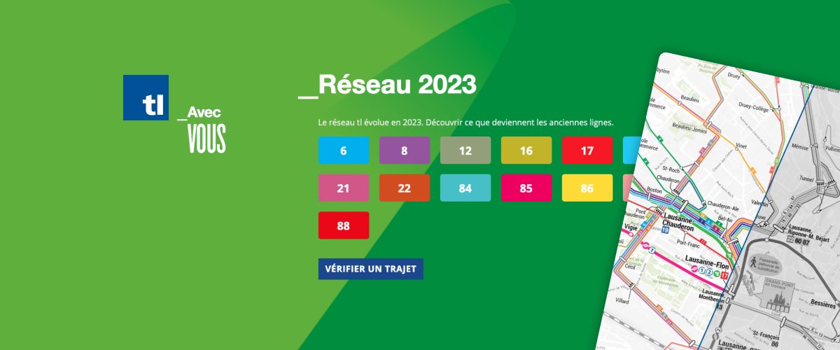Suite à la réouverture du Grand-Pont après une année de travaux, les Transports publics lausannois ont annoncé un nouveau réseau de bus pour 2023. Nous avons créé un microsite interactif pour accompagner les usagers dans ce changement. À cette occasion, Deeplink a lancé un « AI Storyteller » : renversant les codes habituels des sites, la page déroule les contenus en scrollytelling et utilise la conversation comme outil principal d’interaction et de navigation. Fini le chatbot au second plan, place à l’IA intégrée capable de répondre à des demandes d’itinéraires, d’expliquer les changements et de guider les utilisateurs·trices!